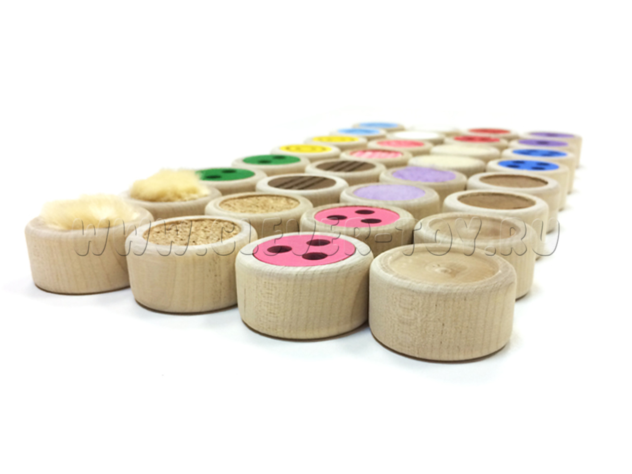 Игра для развития тактильных ощущений. Цель игры - найти на ощупь пары цилиндров с одинаковой поверхностью. В комплект входят: 32 деревянных цилиндра (16 пар), мешок.