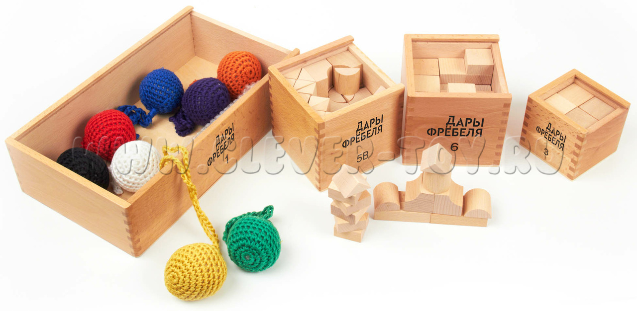 Игровой набор "Дары Фребеля" изготовлен из качественных натуральных материалов (дерева и хлопка). В комплекте 14 модулей и 6 методических пособий соответствующих ФГОС ДО.
