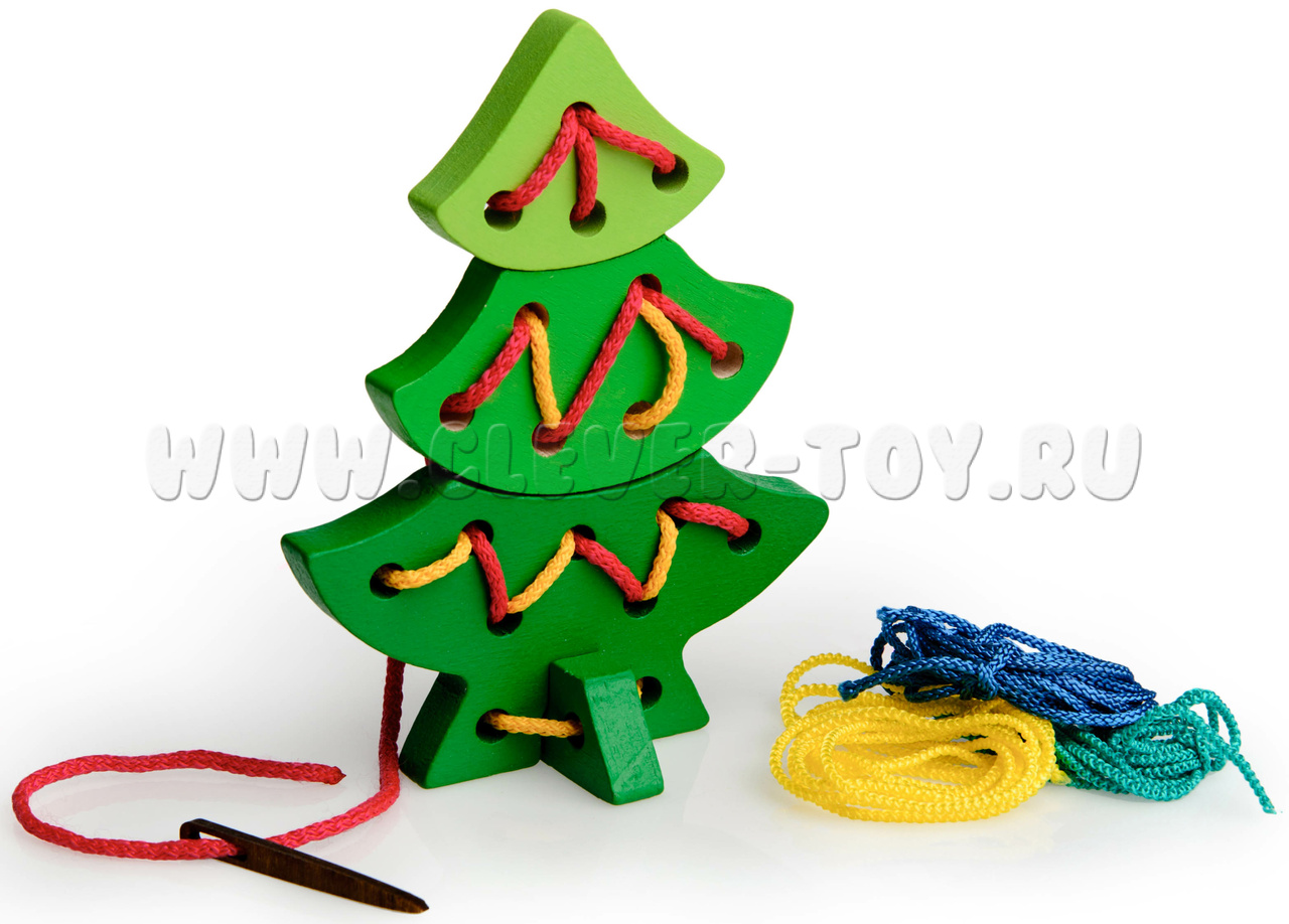 Состоит из иголки, шнурков, елочки с 12 отверстиями.