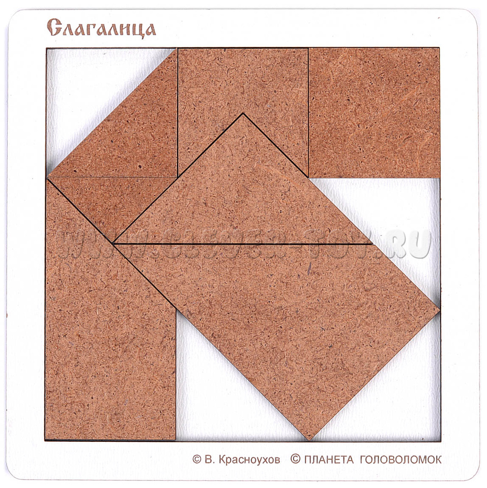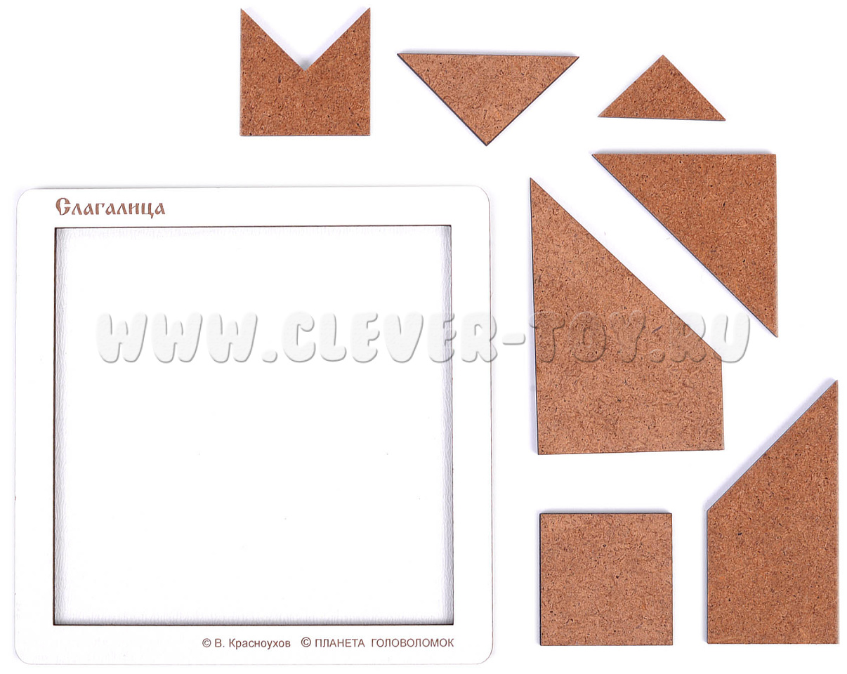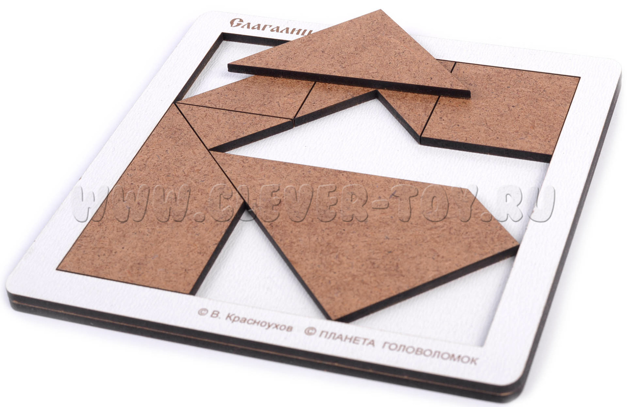 Слагалица - совершенно самобытный и очень гармоничный набор, способный надолго увлечь любителя головоломок и принести ему массу радостных открытий. Задачи - Построение фигур по заданным силуэтам.