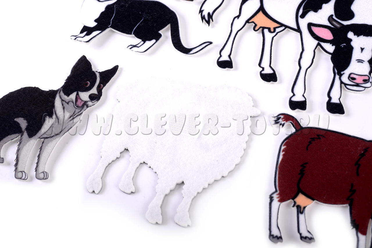 Все фигурки оснащены многоразовыми липучками, благодаря которым животные легко крепятся на игровом поле из фетра или ковролина.