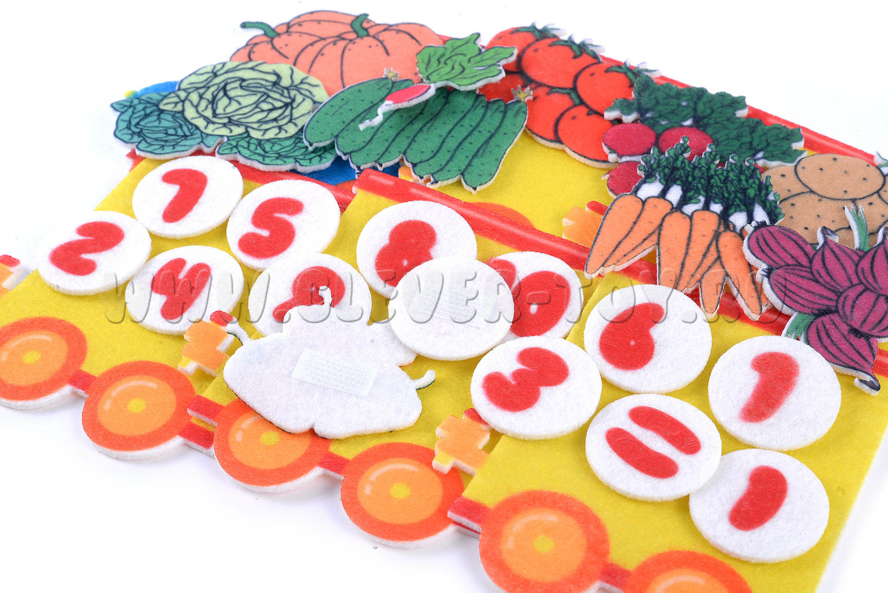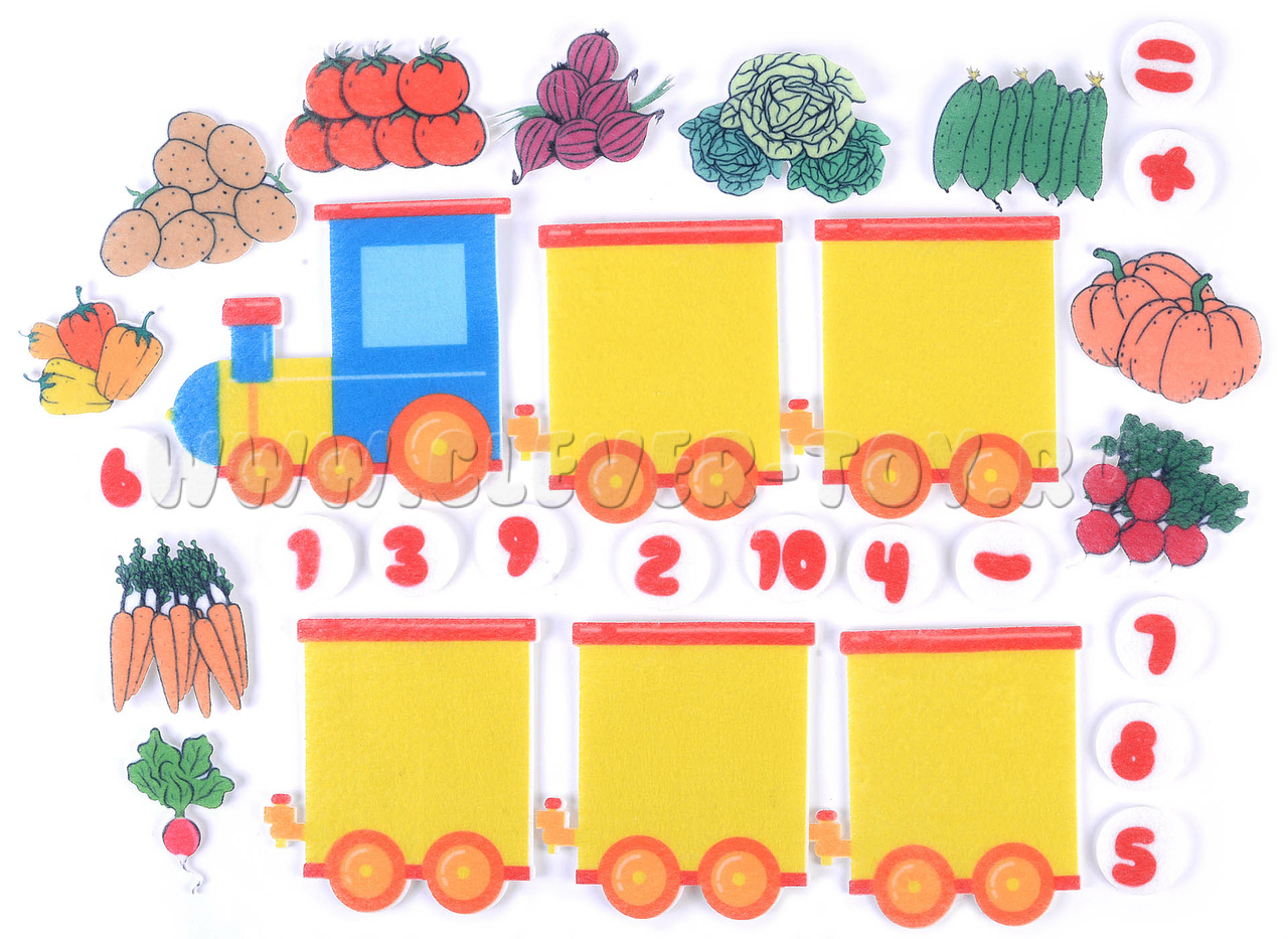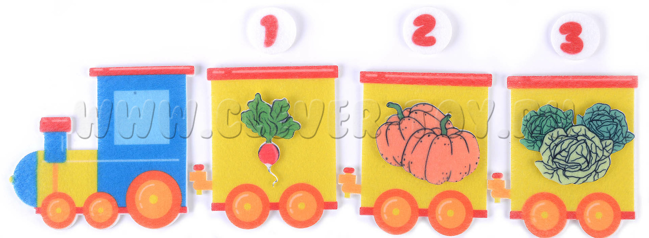 Фетровый конструктор "Паровоз с овощами" уже применяется для обучения дошколят в государственных и частных детсадах России, а также прекрасно зарекомендовал себя для изучения счёта на дому.