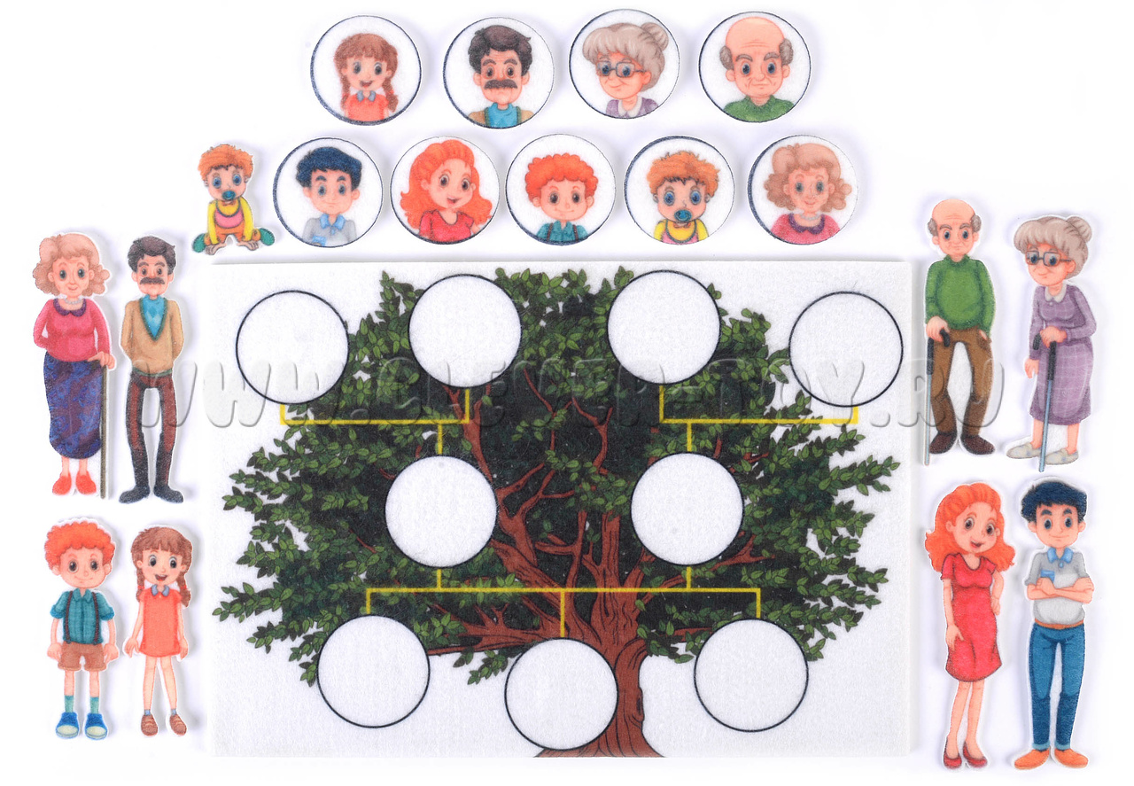 • 9 картинок-фигурок в виде портретов для составления родового дерева;