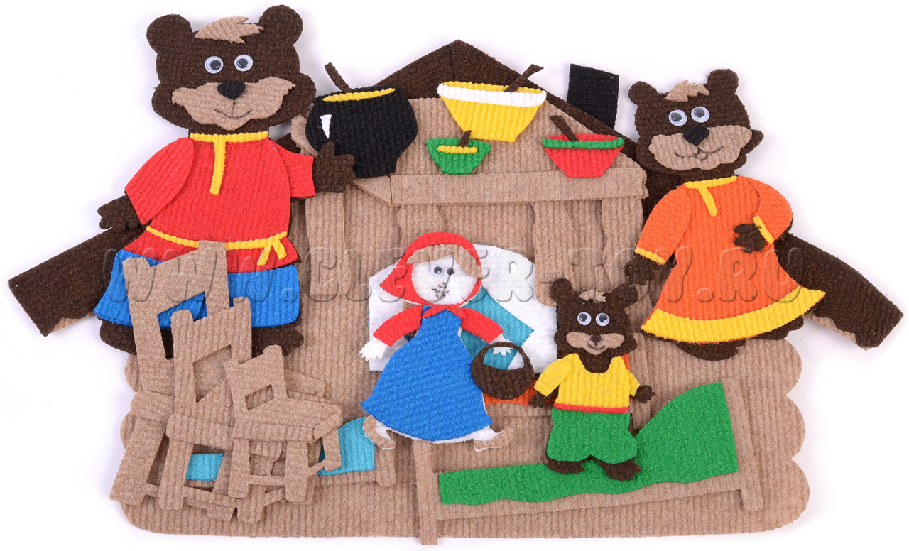 • персонажи сказки: медведь, медведица, медвежонок, девочка;
