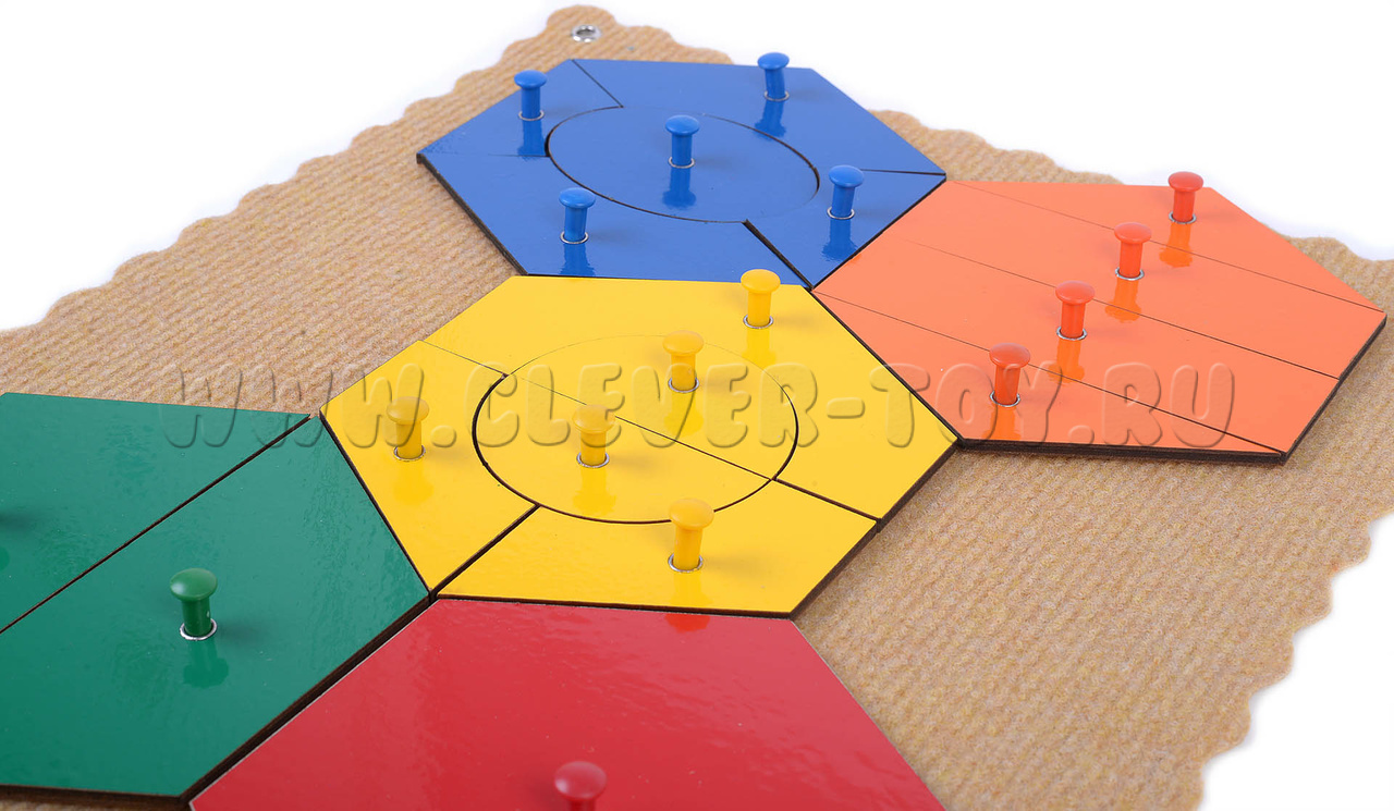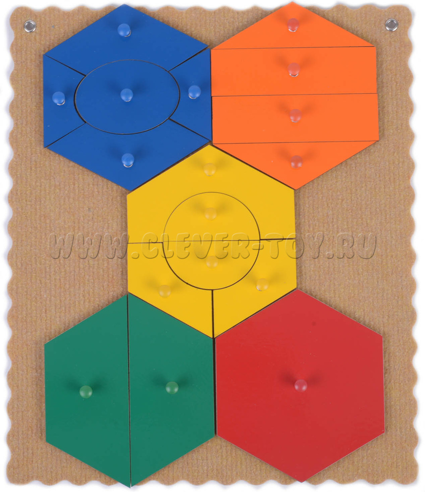 • Соты: целая – красного цвета, из 2-х частей – зелёного, из 4-х частей – оранжевого цвета; из 5-ти частей – жёлтого и синего цвета.