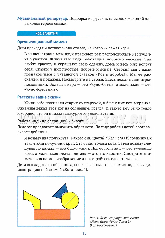 Каждое занятие включает работу с определенной народной сказкой с упором на три ключевых направления детского развития: духовно-нравственное, социально-коммуникативное и познавательное.