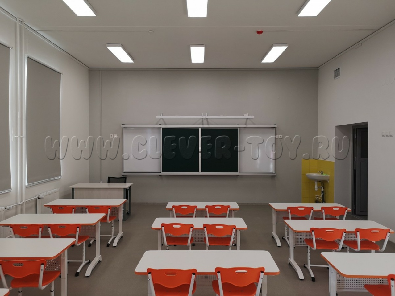 Рельсовая система — это цельная конструкция, состоящая из каркаса и четырёх рабочих поверхностей. Покрытие может быть магнитно-меловым, магнитно-маркерным или комбинированным.