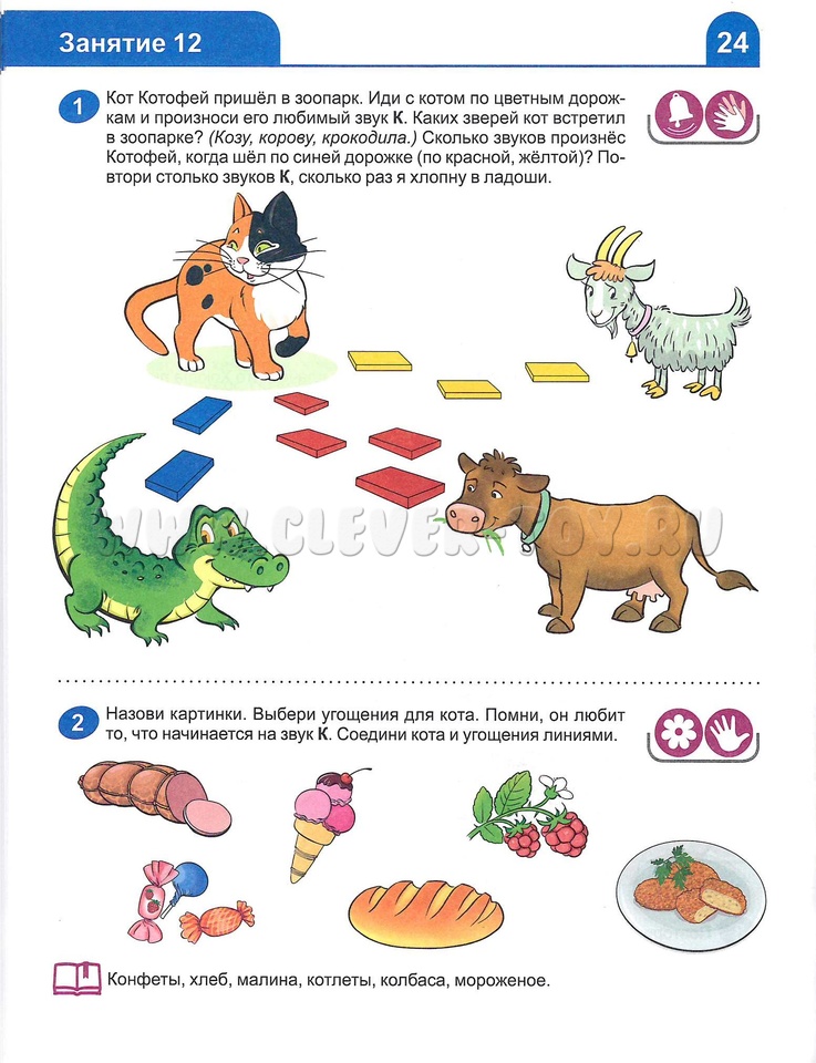 Занятия, представленные в игровой форме, способствуют развитию неречевого слуха, знакомят ребёнка со звуками родного языка, учат запоминать буквы. Задания в тетради учитывают возрастные физиологические и психологические возможности ребёнка. Это означает, что материал не даётся в виде готовых правил, а осваивается детьми на чувственно-практическом опыте в игровой форме.