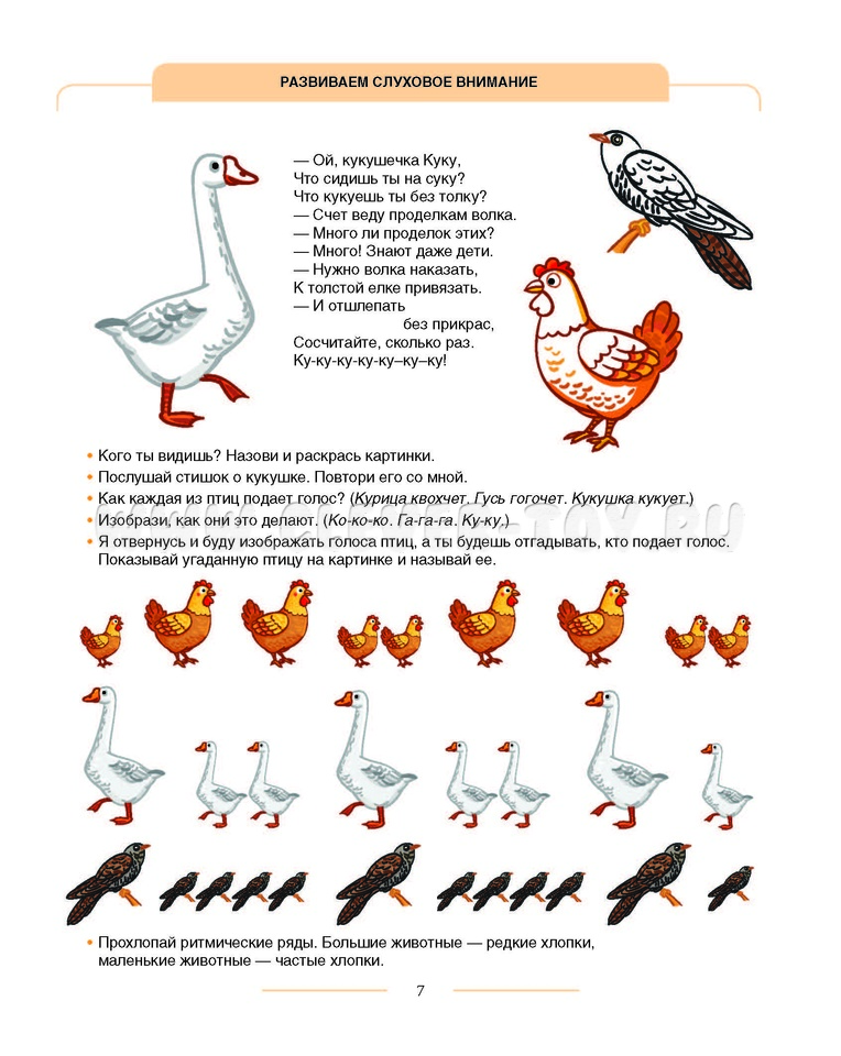 Родители и педагоги получают материал для развития у детей слухового и зрительного внимания, навыков ориентировки в схеме собственного тела, в пространстве, на плоскости, конструктивных навыков, связной речи, навыков слогового анализа слова и анализа предложений.