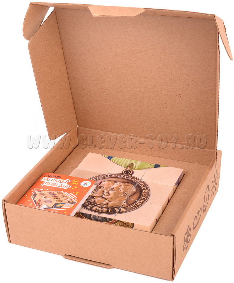 Набор интерактивных деревянных кубиков «Награды Победы» созданы к 75-летию победы в Великой Отечественной Войне. На них изображены ордена и медали, которые в годы войны изготавливались на Краснокамском Гознаке.