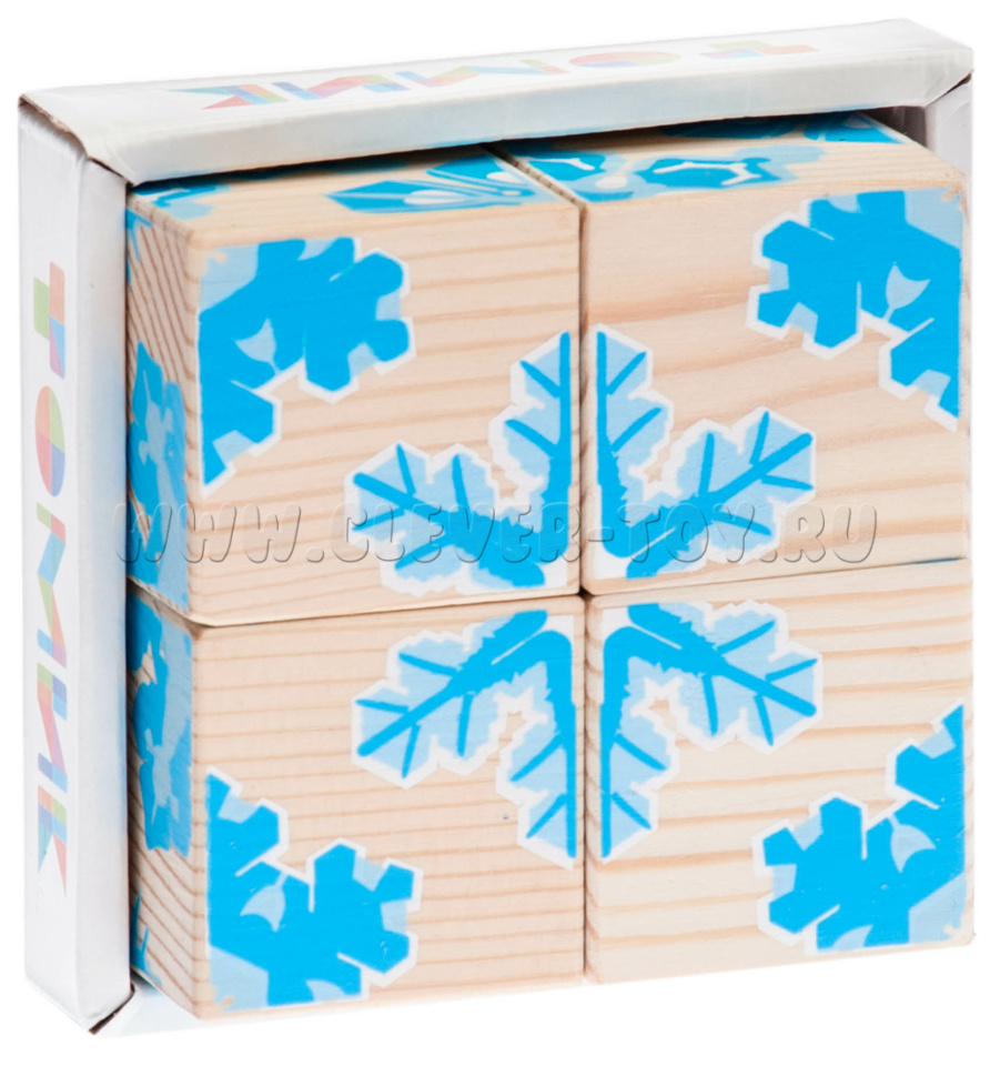В состав входит четыре кубика, из которых ребенок может собрать различные узоры.