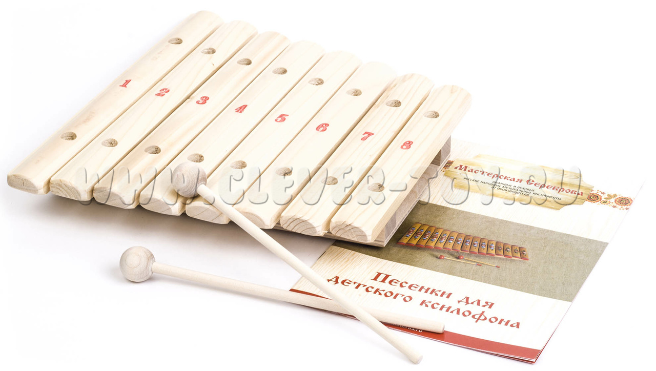 Ксилофон - древний музыкальный инструмент. Он был особенно популярен в Африке, Южной Америке и Азии и имел различное строение, местами даже очень сложное. В Европе и России он прибрел популярность с опозданием. Наш ксилофон сделан из ели и состоит из 8 пластин, обладает не большим размером, и идеально подойдет для начинающих музыкантов. Несмотря на то, что ксилофон не красочный, он обладает интересным, звучанием и без труда сможет привлечь внимание ребенка. Детям будет интересно разучивать любимые мелодии из советских мультфильмов или сказок, ведь на нем очень просто обучаться. Многие думают, что когда ребенок учится играть на каком-то музыкальном инструменте, то он развивает только один определенный навык, но на самом деле, музыкальные инструменты служат разностороннему развитию навыков и умений.